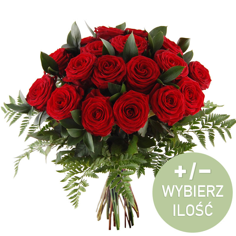 Zawsze świeże kwiaty Skomponuj indywidualnie piękny bukiet czerwonych róż i wybierz odpowiednią ilość oraz długość kwiatów. Długość róż w wersji: